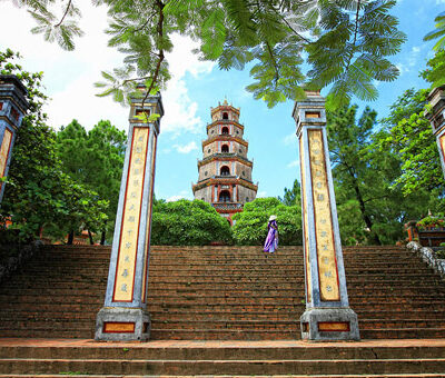 - 9h30: Qúy khách có mặt tại TP Huế đoàn ghé tham quan Chùa Thiên Mụ. Là ngôi chùa linh thiêng và có kiến trúc cổ nằm bên dòng Sông Hương thơ mộng.