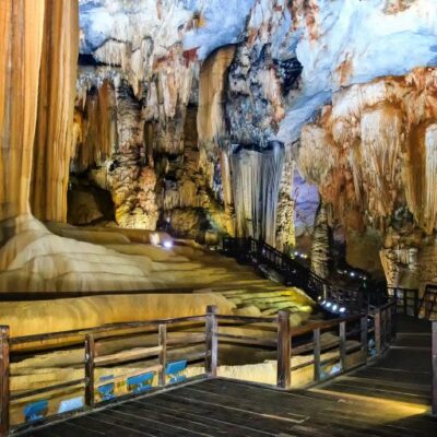 - Ngày 2: Huế – Quảng Bình (S,Tr,T): Khám phá vui chơi Động Phong Nha – Sông Chày hang Tối.